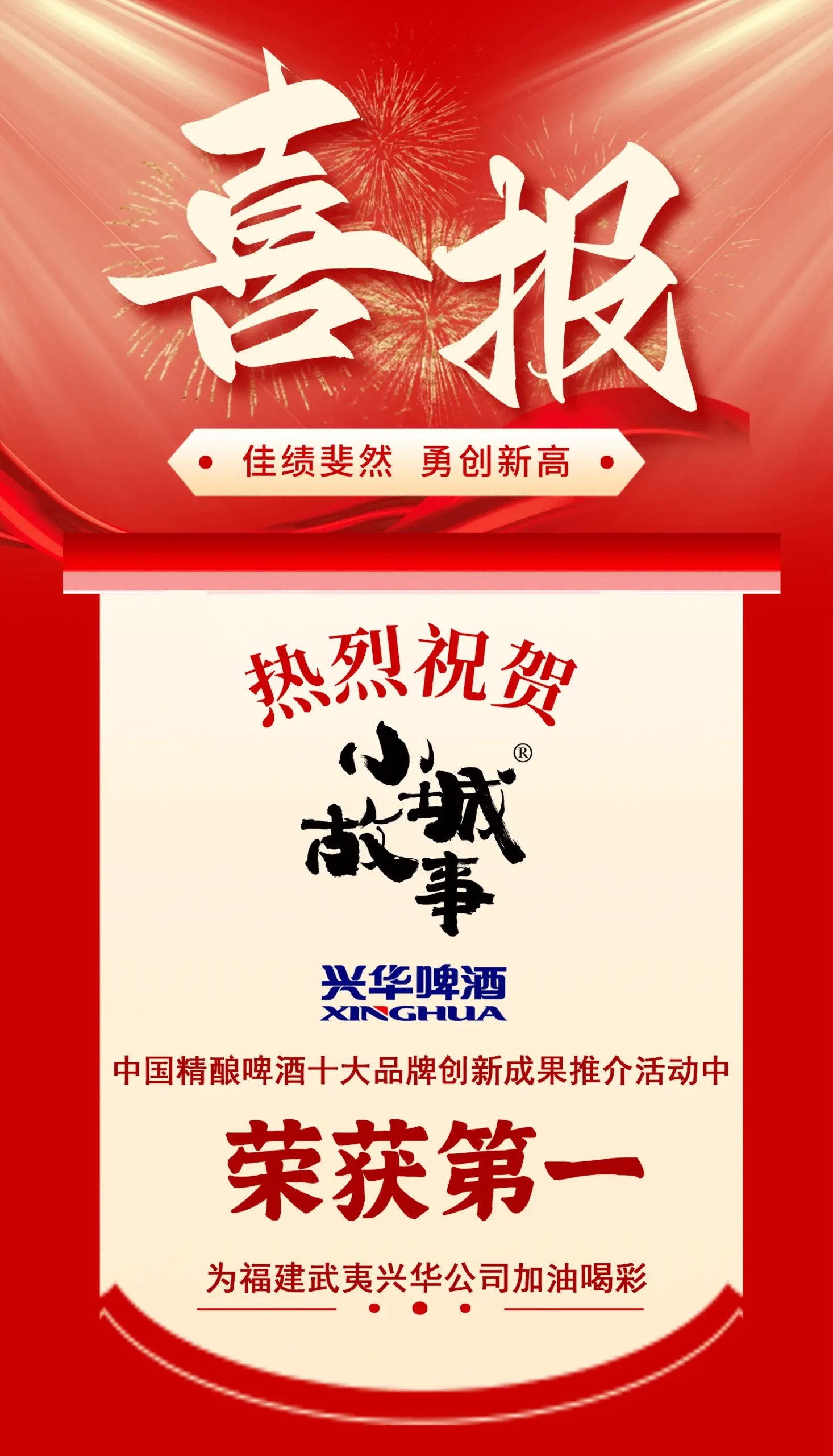 Xinghua Enterprise’s Small Town Story Beer took first place in the “Making Premium Domestic Products, Promoting National Brands” competition among the top ten Chinese craft beer brands, organized by eight mainstream media outlets nationwide. We would like to express our special thanks to every friend, family member, and employee of our company for their tireless support. We express our deepest respect and gratitude!